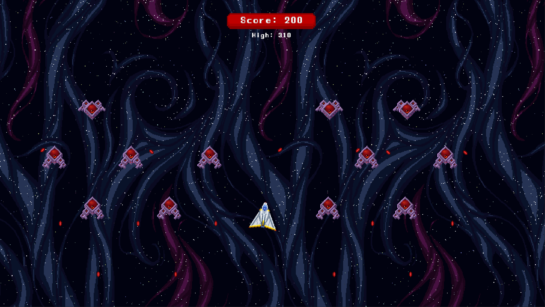 A thrilling 2D space shooter where you pilot your spacecraft through increasingly challenging waves of enemies. Navigate through space, dodge enemy fire, and survive as long as you can with only 3 lives!